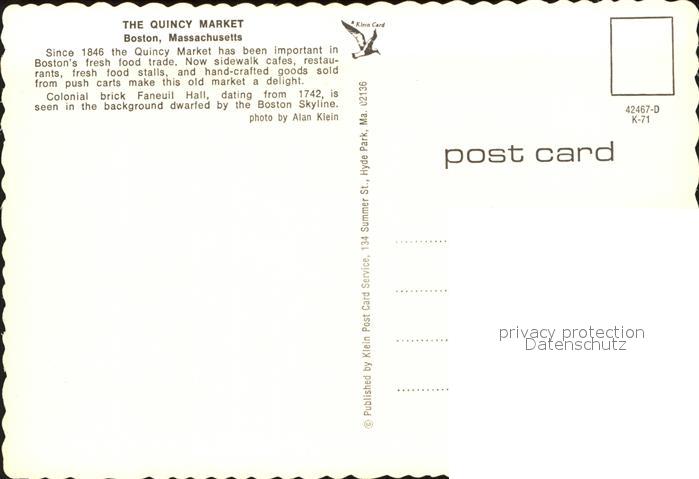 71668980 Boston Massachusetts Quincy Market and Faneuil Hall postalisch nicht gelaufen Erhaltung siehe scans KatCode: 14140230000000