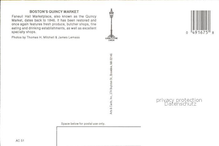 72555730 Boston Massachusetts Quincy Market postalisch nicht gelaufen Erhaltung siehe scans [AndreD76] KatCode: 14140230000000