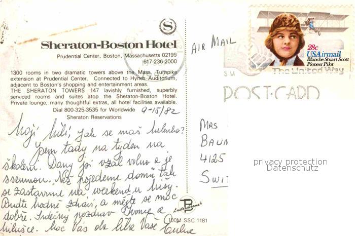 72650829 old postcard Boston Massachusetts Sheraton Hotel postalisch gelaufen Erhaltung siehe scans [FriedD77] KatCode: 14140230000000