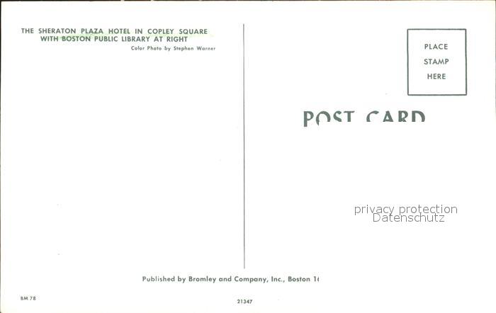 72303784 Boston Massachusetts Sheraton Plaza Hotel postalisch nicht gelaufen Erhaltung siehe scans KatCode: 14140230000000