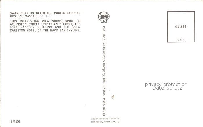 72172268 Boston Massachusetts Swan Boat Gardens postalisch nicht gelaufen Erhaltung siehe scans KatCode: 14140230000000