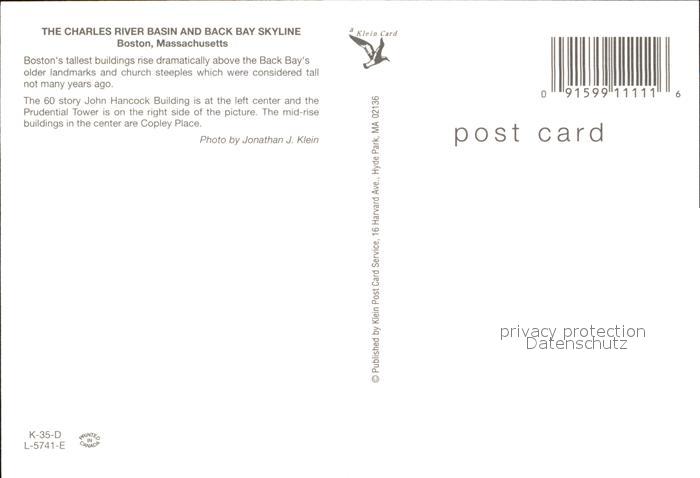 72556286 Boston Massachusetts The Charles River and Back Bay Skyline postalisch nicht gelaufen Erhaltung siehe scans [AndreD76] KatCode: 14140230000000