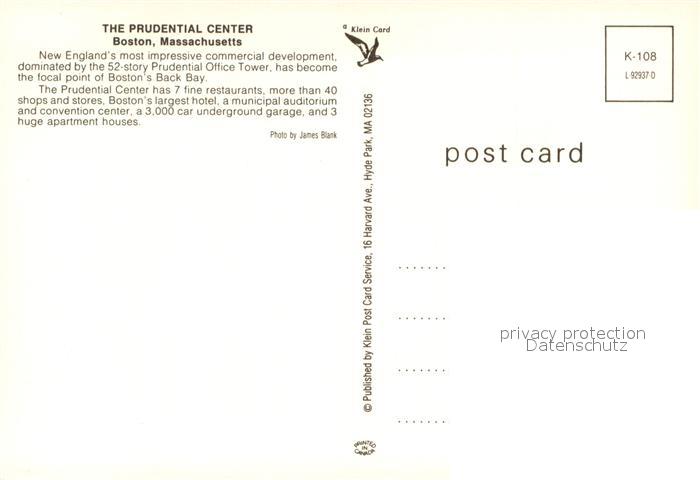 73716120 Boston Massachusetts The Prudential Center postalisch nicht gelaufen Erhaltung siehe scans [WerneD78] KatCode: 14140230000000