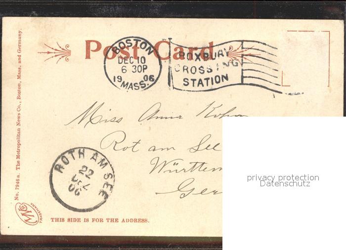 71568763 old postcard Boston Massachusetts Trinity Church postalisch gelaufen Erhaltung siehe scans KatCode: 14140230000000