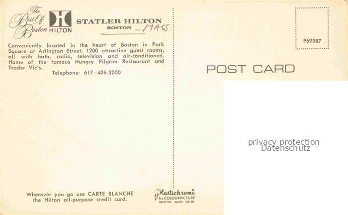 74023117 BOSTON Massachusetts USA Statler Hilton postalisch nicht gelaufen Erhaltung siehe scans [WerneD78] KatCode: 14140230000000