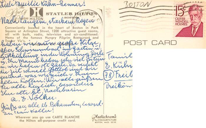 73904586 old postcard Boston Massachusetts USA Statler Hilton postalisch gelaufen Erhaltung siehe scans [FriedD77] KatCode: 14140230000000