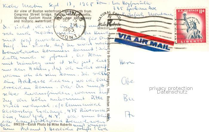 73732467 old postcard Boston Massachusetts Waterfront looking north from Congress Street bridge aerial view postalisch gelaufen Erhaltung siehe scans [FriedD77] KatCode: 14140230000000