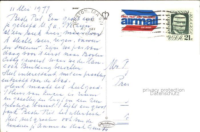 old postcard Boston Park Street Church postalisch gelaufen Erhaltung siehe scans
