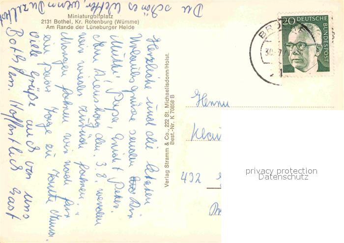 72773716 alte Postkarte Bothel Rotenburg Miniaturgolfplatz postalisch gelaufen Erhaltung siehe scans [AndreD76] KatCode: 11110003357006