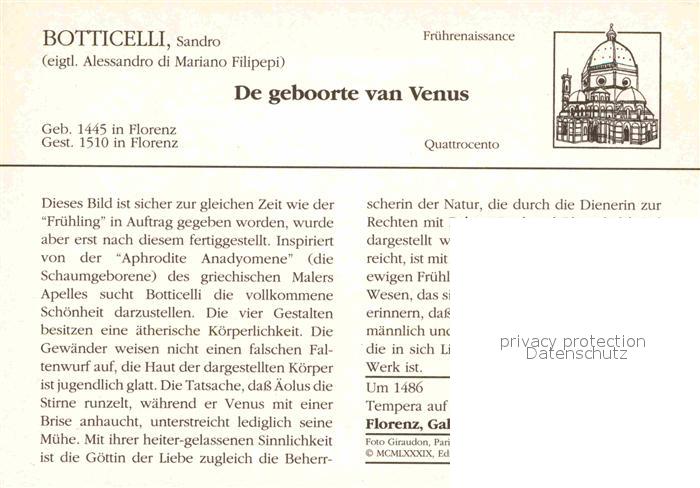 72685817 Botticelli De geboorte van Venus 1486 Frührenaissance KatCode 22240000004700