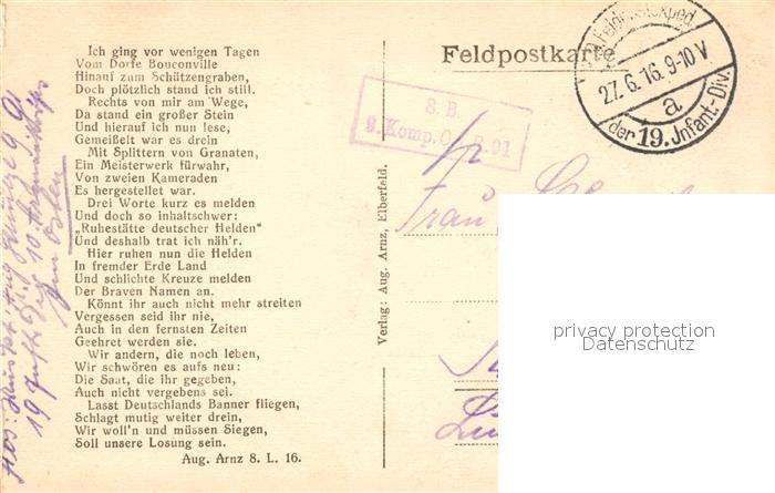 13220278 carte postale Bouconville Ardennes Soldatenfriedhof postalisch gelaufen Feldpost Erhaltung siehe scans [WerneD78] KatCode: 11170008408074