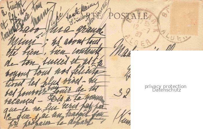 74156808 old postcard Boufarik Algerie L Eglise Kirche Kirchturm Kolonialarchitektur Palmen Arkaden Kreuz postalisch gelaufen Erhaltung siehe scans [Karloger] KatCode: 18030