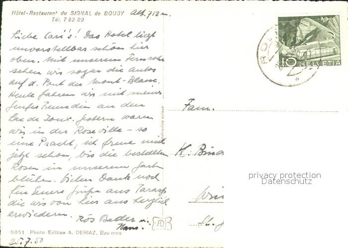 11644833 alte Postkarte Bougy-Villars Hotel Restaurant du Signal de Bougy postalisch gelaufen Erhaltung siehe scans KatCode: 11470240760850