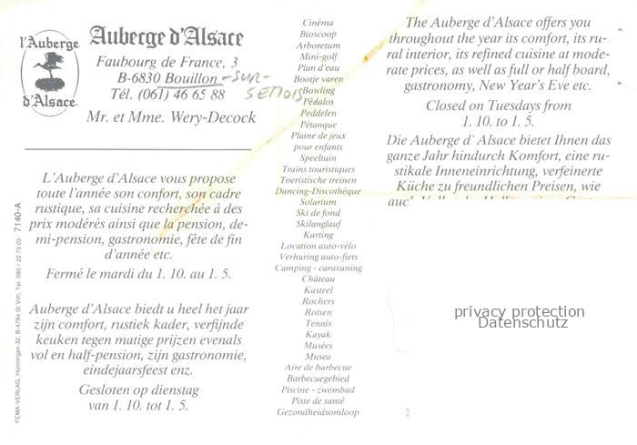 74132302 BOUILLON-sur-Semois Belgie Auberge d’Alsace Restaurant postalisch nicht gelaufen Werbekarte (keine Postkarte) Erhaltung siehe scans [FriedD77] KatCode: 11070084000092