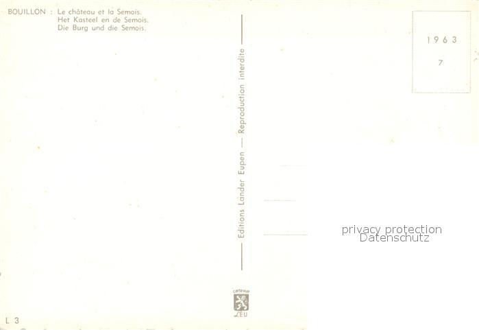 13357644 Bouillon sur Semois Le Chateau et la Semois postalisch nicht gelaufen Erhaltung siehe scans [FriedD77] KatCode: 11170061161056