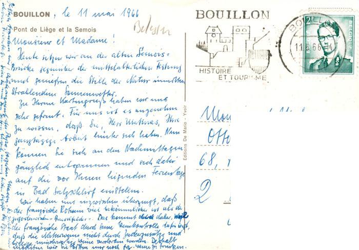 73924421 carte postale Bouillon Wallonne Belgie Pont de Liege et la Semois postalisch gelaufen Erhaltung siehe scans [WerneD78] KatCode: 11070084000092