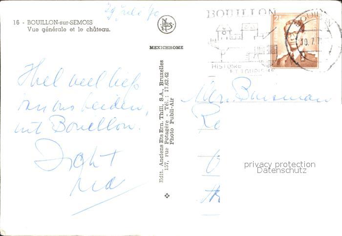 72298967 carte postale Bouillon Wallonne Le chateau postalisch gelaufen Erhaltung siehe scans KatCode: 11070084000092