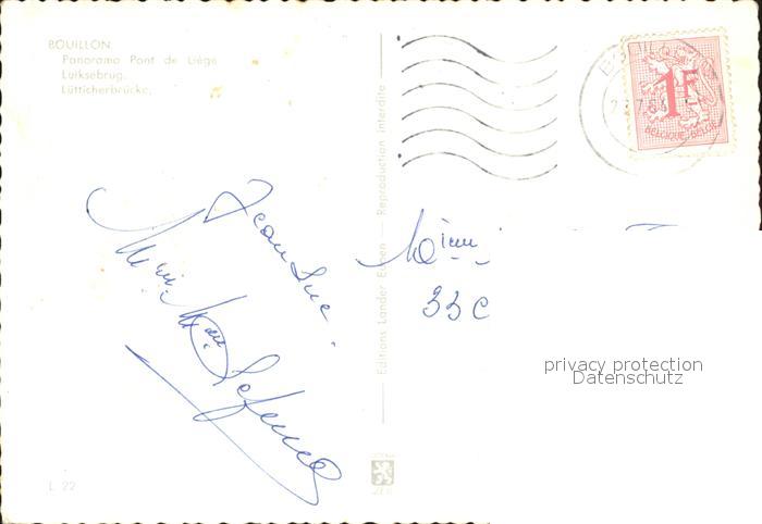 72298856 carte postale Bouillon Wallonne Luetticherbruecke postalisch gelaufen Erhaltung siehe scans KatCode: 11070084000092