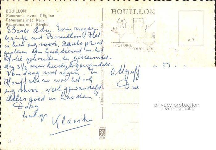 72605597 carte postale Bouillon Wallonne Panorama mit Kirche postalisch gelaufen Erhaltung siehe scans [AndreD76] KatCode: 11070084000092