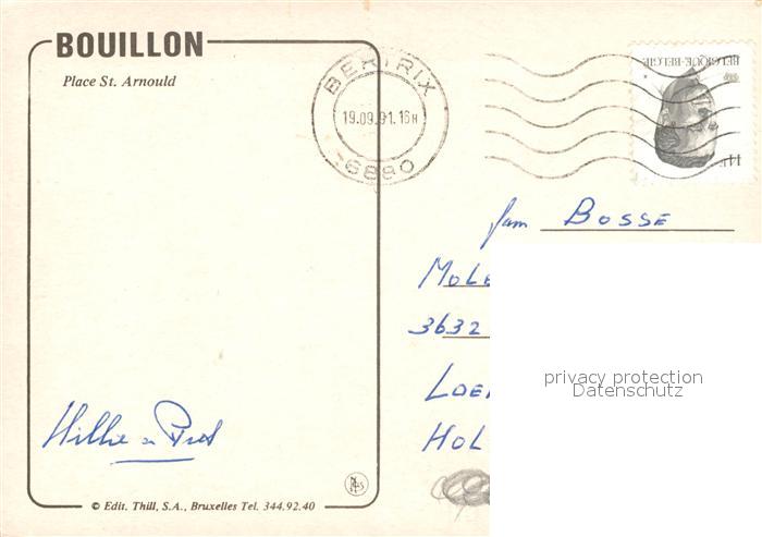 73361390 carte postale Bouillon Wallonne Place Saint Arnould Pont postalisch gelaufen Erhaltung siehe scans [FriedD77] KatCode: 11070084000092