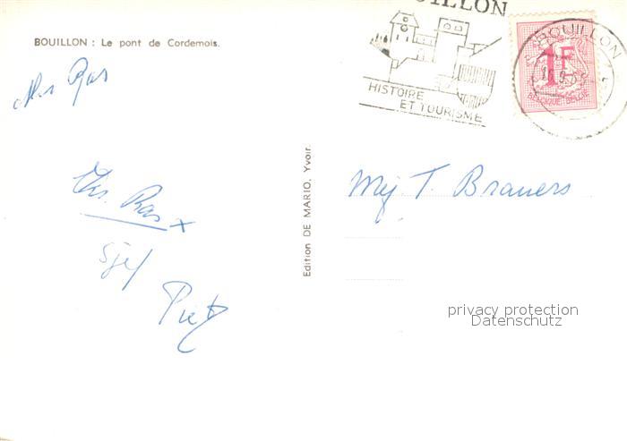 72926835 carte postale Bouillon Wallonne Pont de Cordemois postalisch gelaufen Erhaltung siehe scans [FriedD77] KatCode: 11070084000092