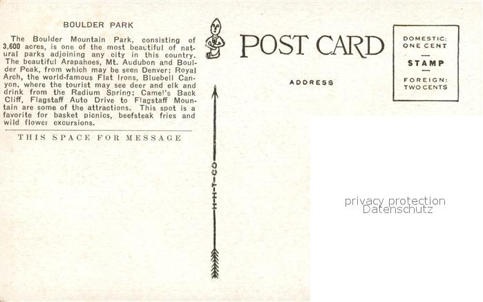 43193527 Boulder Colorado Boulder-Park postalisch nicht gelaufen Erhaltung siehe scans [LiesaD40] KatCode: 14140060000000