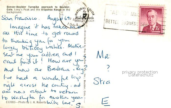 73130339 old postcard Boulder Colorado Turnpike postalisch gelaufen Erhaltung siehe scans [NatalD47] KatCode: 14140060000000