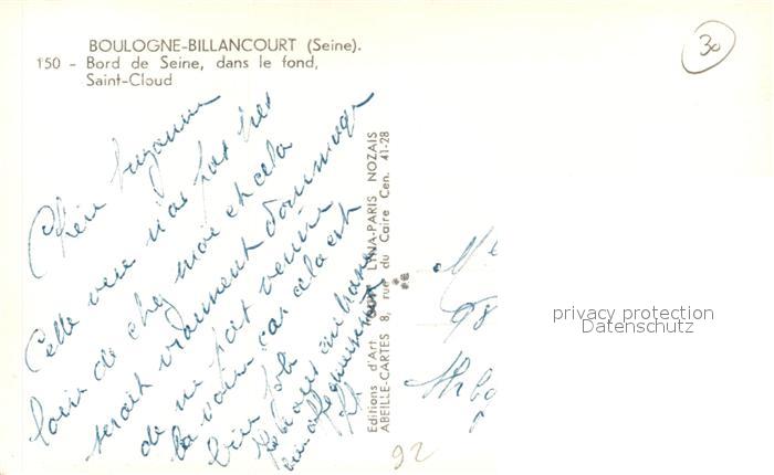 13491192 Boulogne-Billancourt Bord de Seine Bateau dans le fond Saint Cloud postalisch nicht gelaufen Erhaltung siehe scans [FriedD77] KatCode: 11170092392012