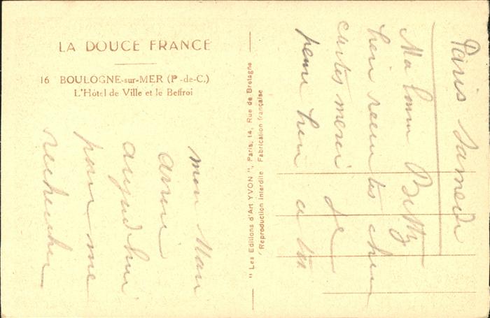 11341440 Boulogne-sur-Mer Hotel de Ville et le Beffroi Glockenturm KatCode 11170062362160