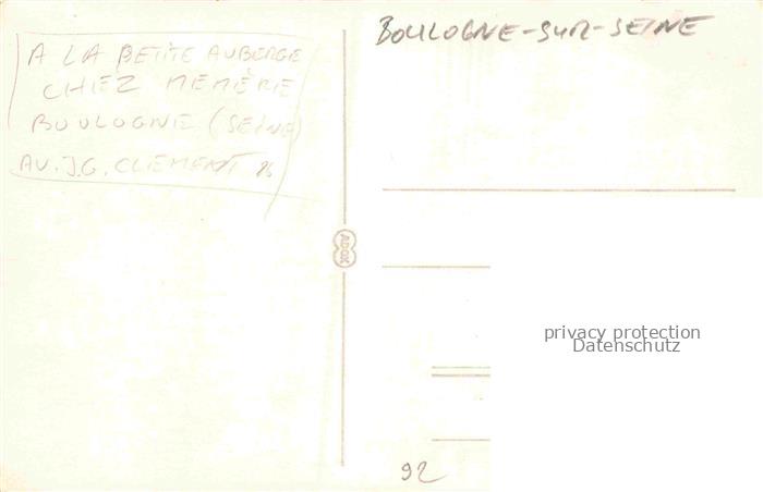 14113149 BOULOGNE-SUR-SEINE BOULOGNE-BILLANCOURT 92 A la Petite Auberge Chez Memère le soir postalisch nicht gelaufen Erhaltung siehe scans [FriedD77] Frie Katcode 11170092392012