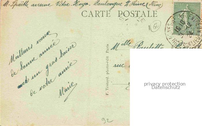 14110726 carte postale BOULOGNE-SUR-SEINE BOULOGNE-BILLANCOURT 92 Carrefour de l’Avenue Victor Hugo et de l’Avenue de la Reine E.M. postalisch gelaufen Erhaltung siehe scans [FriedD77] KatCode: 11170092392012