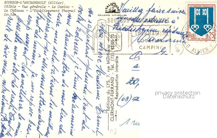 13490680 carte postale Bourbon-l Archambault Casino Chateau Etablissement Thermal Lac postalisch gelaufen Erhaltung siehe scans [FriedD77] KatCode: 11170003203036