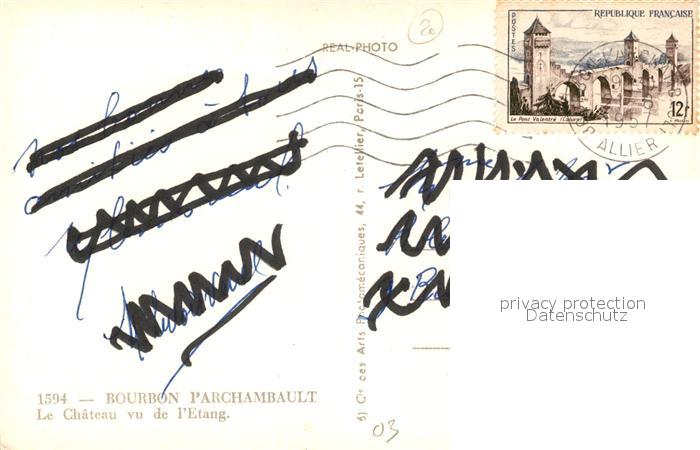 13490683 carte postale Bourbon-l Archambault Chateau vu de l’étang postalisch gelaufen Erhaltung siehe scans [FriedD77] KatCode: 11170003203036
