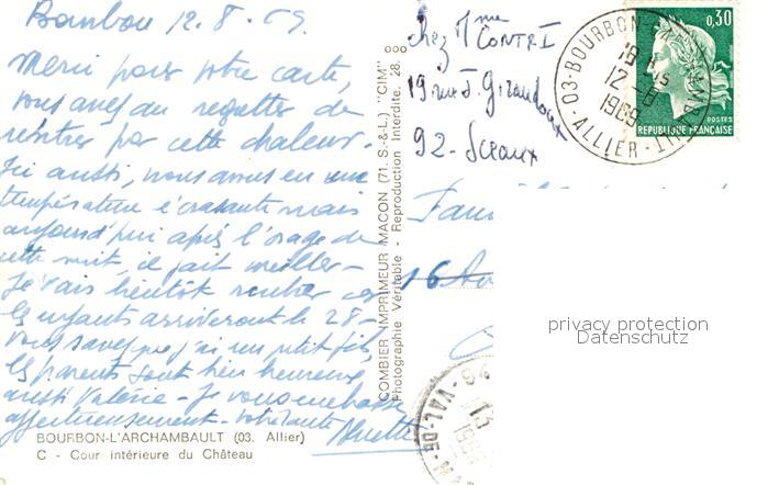 12934637 carte postale Bourbon-l Archambault Cour interieure du Chateau postalisch gelaufen Erhaltung siehe scans [FriedD77] KatCode: 11170003203036