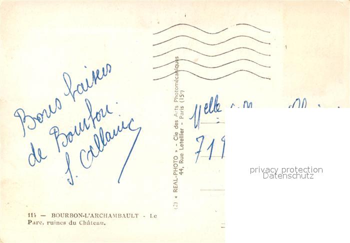 13587958 Bourbon-l Archambault Parc Ruines du Chateau postalisch nicht gelaufen Erhaltung siehe scans [WerneD78] Wern Katcode 11170003203036