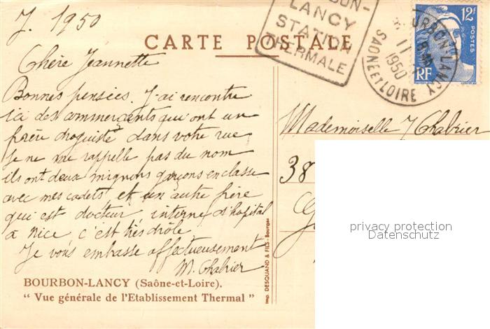 13533189 carte postale Bourbon-Lancy Etablissement Thermal Dessin Kuenstlerkarte postalisch gelaufen Erhaltung siehe scans [FriedD77] KatCode: 11170071371047