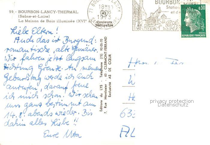 13155790 carte postale Bourbon-Lancy La Maison de Bois illuminee postalisch gelaufen Erhaltung siehe scans [WerneD78] KatCode: 11170071371047