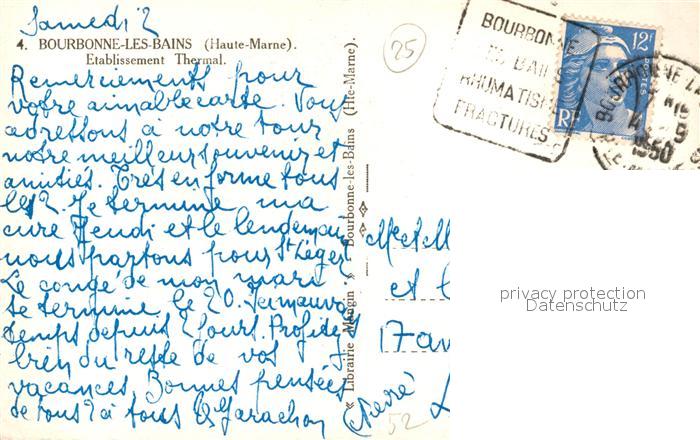 13506376 carte postale Bourbonne-les-Bains Etablissement Thermal postalisch gelaufen Erhaltung siehe scans [FriedD77] KatCode: 11170052252060