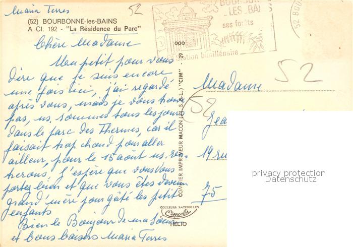 13266670 carte postale Bourbonne-les-Bains La Residence du Parc postalisch gelaufen Erhaltung siehe scans [WerneD78] KatCode: 11170052252060