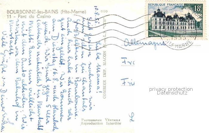 12825958 carte postale Bourbonne-les-Bains Parc du Casino postalisch gelaufen Erhaltung siehe scans [PaolaD17] KatCode: 11170052252060