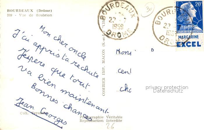 13499746 carte postale Bourdeaux Vue de Soubrion postalisch gelaufen Erhaltung siehe scans [FriedD77] KatCode: 11170026126056