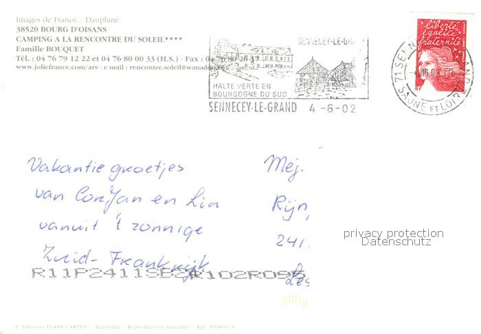 13519011 carte postale Bourg-d Oisans Camping a la rencontre du soleil Swimming Pool Fahrradtour postalisch gelaufen Erhaltung siehe scans [FriedD77] KatCode: 11170038138052