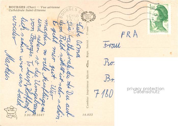 13719877 Bourges 18 Vue aerienne Cathedrale Saint Etienne postalisch gelaufen Erhaltung siehe scans [WerneD78] carte postale Wern Katcode 11170018118033