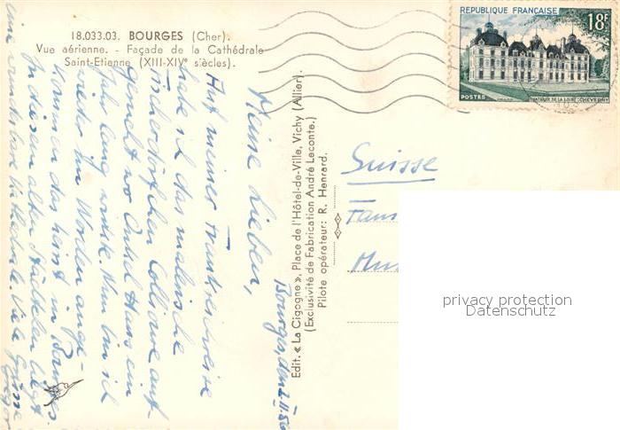 13301732 carte postale Bourges Cathedrale Vue Aerienne postalisch gelaufen Erhaltung siehe scans [PaolaD17] KatCode: 11170018118033