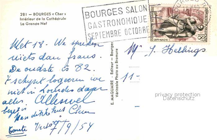 12697335 carte postale Bourges Interieur de la Catheddrale La Grande Nef postalisch gelaufen Erhaltung siehe scans [WerneD78] KatCode: 11170018118033