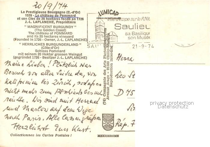 13617912 Bourgogne Region Le Chateau de Pommard Vue aerienne postalisch gelaufen Erhaltung siehe scans [WerneD78] carte postale Wern Katcode 11170021221231