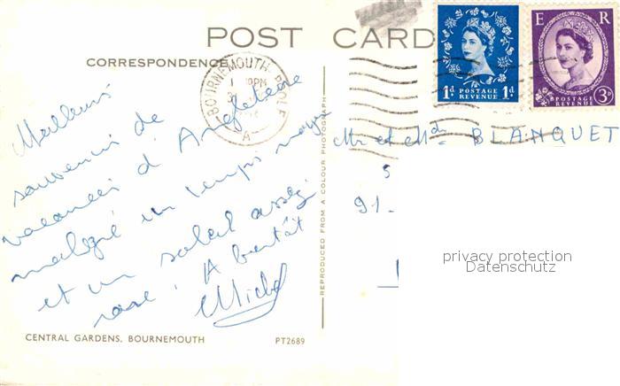 old postcard Bournemouth Central Gardens postalisch gelaufen Erhaltung siehe scans [LiesaD40]