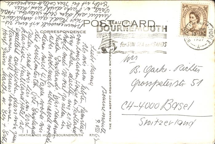 old postcard Bournemouth Heathlands Hotel postalisch gelaufen Erhaltung siehe scans