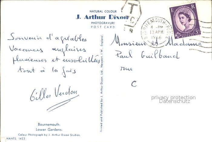 old postcard Bournemouth Lower Gardens postalisch gelaufen Erhaltung siehe scans