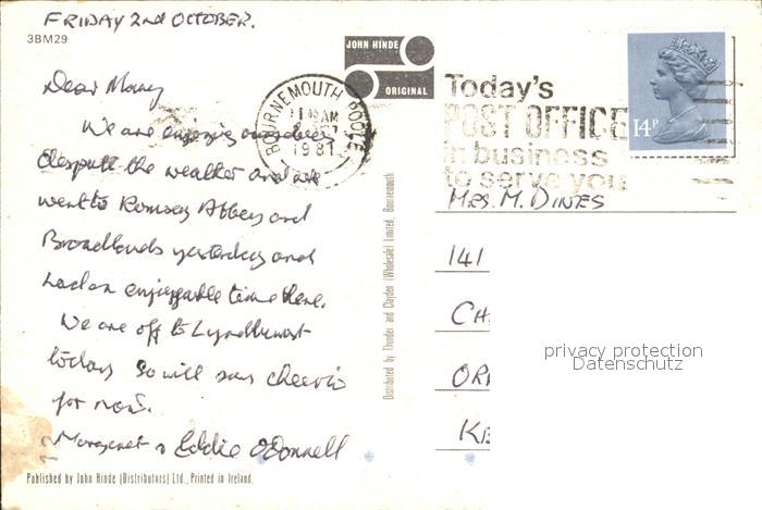 old postcard Bournemouth Pavilion Rock Gardens postalisch gelaufen Erhaltung siehe scans